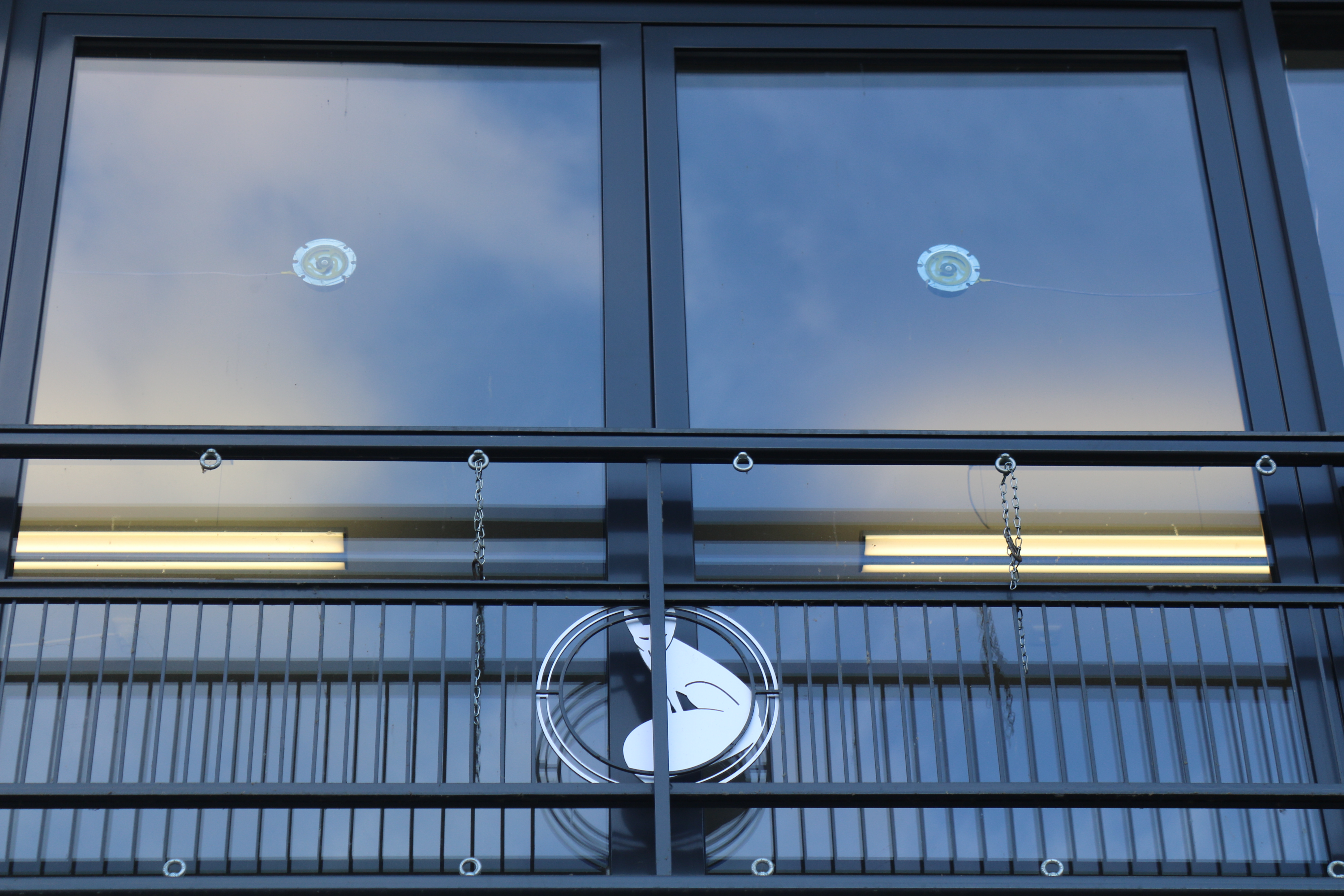 Acoustic Ruin is a site-specific sound installation which erases the barrier between inside and outside of the architectonic space at the entry area of the city hall Reinickendorf through sound. The border between institutional and public space disappears sonically. Transducers make the glass of the windows vibrate, distributing sound in both directions of the walls, the windows speak. Spaces which otherwise are disconnected, connect via sound. The composition of this piece originates from fieldrecordings of the surrounding area and the inside of this building, which become an abstracted and atemporal texture changing the atmosphere and perception of the place.