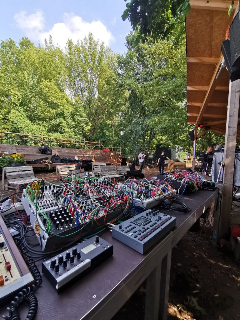 “les ephemeres” is a duo composed of Katharina Bévand and Stéphane Lefrancois. They perform on a modular setup, extended by diverse and intriguing sound sources. They are fascinated with the evanescent and visceral symbiosis between movement, touch, space, and sound. Katharina’s thriving and bewitching soundscapes, together with Stéphane’s abstract and organic rhythms, conjure haunting and bizarre fleeting sonic spells, magnified by hypnotic, synergistic visuals.